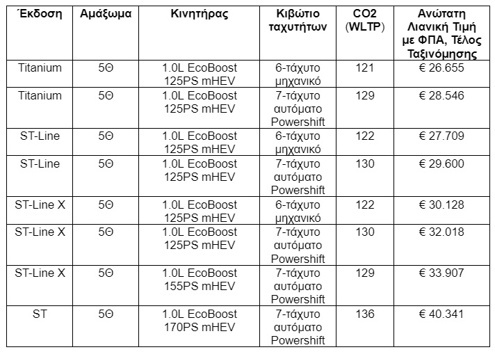 κινητήρα 1.0L EcoBoost Hybrid 170PS και 7-τάχυτο αυτόματο