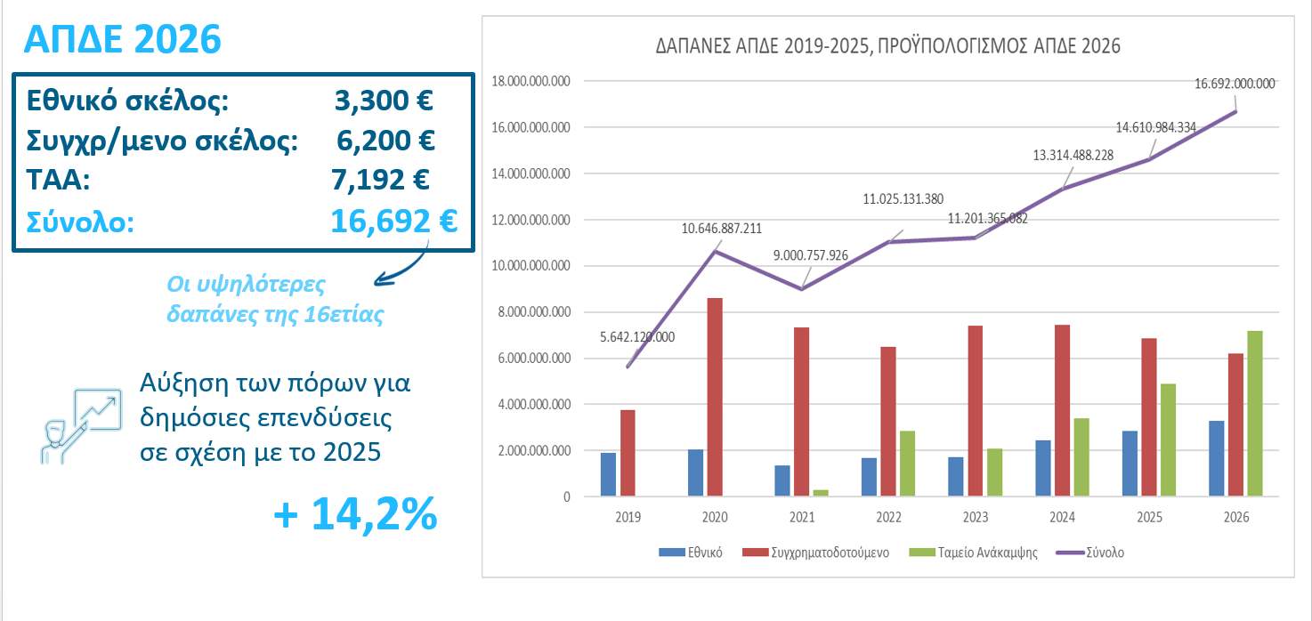 Ο κ. Παπαθανάσης σημείωσε την πλήρη εκτέλεση του Προϋπολογισμού Δημοσίων Επενδύσεων για το 2025, ύψους 14,6 δισ ευρώ, την περαιτέρω αύξηση των διαθέσιμων πόρων για το 2026, οι οποίοι ανέρχονται στο ποσό των 16,7 δισ. ευρώ. Αλλά και την προσήλωση στην εφαρμογή της μεταρρύθμισης του Αναπτυξιακού Προγράμματος Δημοσίων Επενδύσεων, η οποία συνέβαλε σημαντικά στην ταχεία και πλήρη αξιοποίηση των εθνικών και ενωσιακών πόρων.