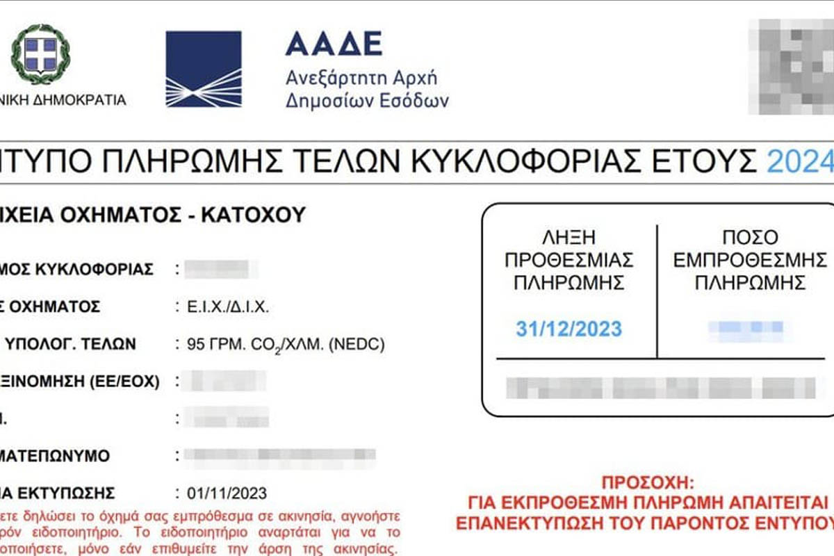 , με το ύψος των τελών κυκλοφορίας να υπολογίζεται