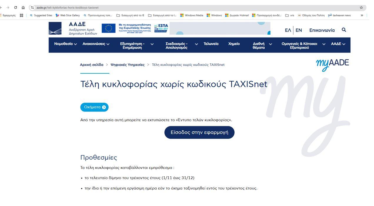 Κατόπιν οι ιδιοκτήτες από την υπηρεσία αυτή μπορούν να εκτυπώσουν το «Έντυπο τελών κυκλοφορίας».