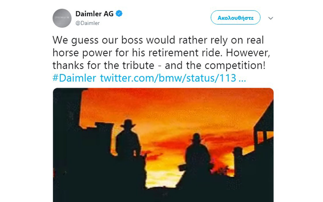 Η απάντηση της Daimler ήρθε μέσω του twitter, όπου βλέπουμε δύο