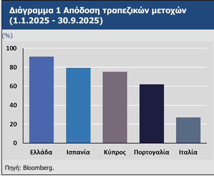Η ενίσχυση των ισολογισμών, αλλά και ένα ευνοϊκό μακροοικονομικό περιβάλλον, είναι κατά την Τράπεζα της Ελλάδος (ΤτΕ), οι δύο λόγοι της εντυπωσιακής υπεραπόδοσης των ελληνικών τραπεζικών μετοχών το εννεάμηνο του 2025, καθώς η βελτίωση της εμπιστοσύνης των επενδυτών στις προοπτικές τόσο του κλάδου όσο και της χώρας οδήγησαν στις αυξημένες μετοχικές αποδόσεις, οι οποίες έφτασαν ακόμη και το 90%.