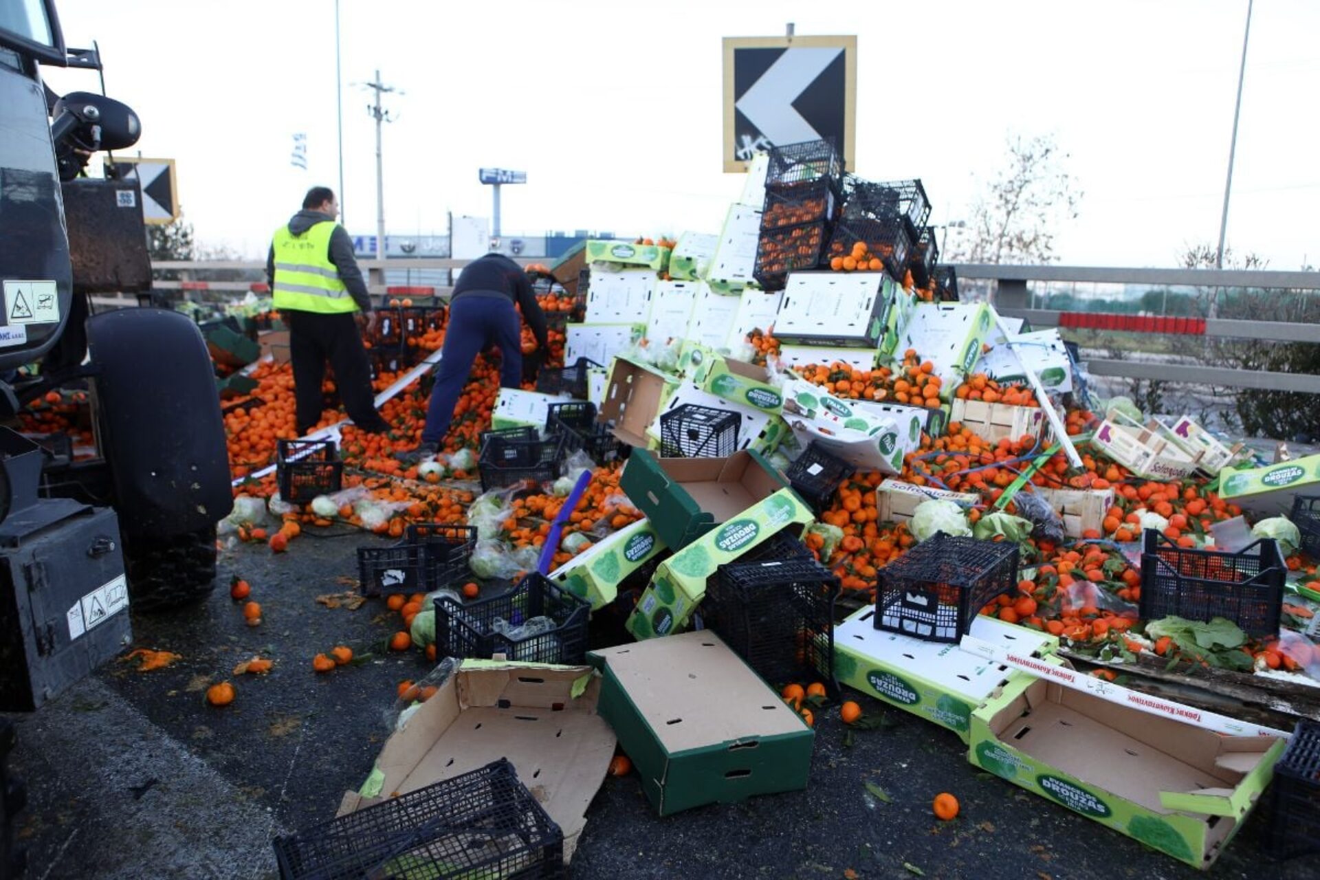 Ο δρόμος γέμισε με πορτοκάλια, με τα συνεργεία να κάνουν