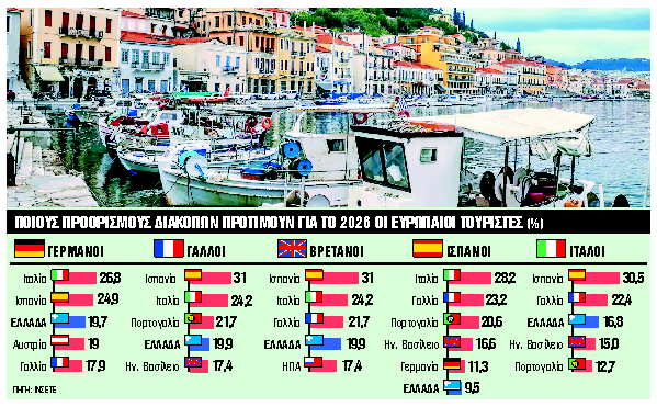Σταθερά Ελλάδα «ψηφίζουν» οι μεγάλες τουριστικές αγορές της Ευρώπης για το 2026, αναδεικνύοντας τη χώρα μας στις top επιλογές τους για ταξίδια στη Μεσόγειο μέσα στο επόμενο δωδεκάμηνο. Ο ελληνικός τουρισμός όχι μόνο διατηρεί το ισχυρό brand που έχει χτίσει τα τελευταία χρόνια στις μεγάλες αγορές της Δυτικής Ευρώπης, αλλά έχει βελτιώσει περαιτέρω την εικόνα του.