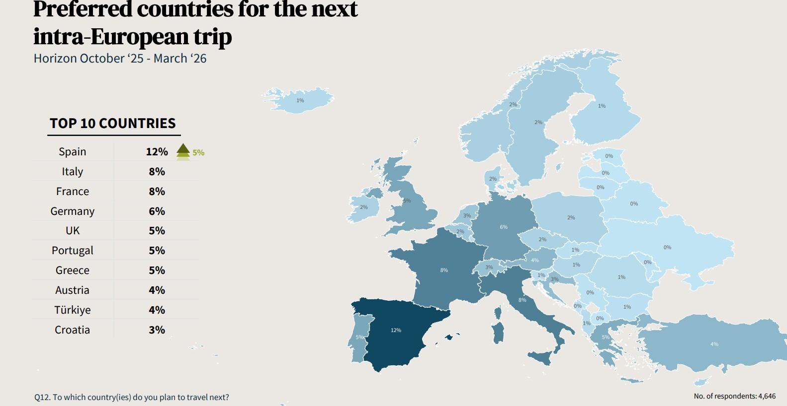 Τα διεθνή ταξίδια εντός της Ευρώπης βρίσκονται σε άνοδο. Οι περισσότεροι Ευρωπαίοι (63%) σχεδιάζουν να ταξιδέψουν εκτός της χώρας καταγωγής τους αυτό το φθινόπωρο και τον χειμώνα, μια αξιοσημείωτη αύξηση 3% από το περασμένο φθινόπωρο.