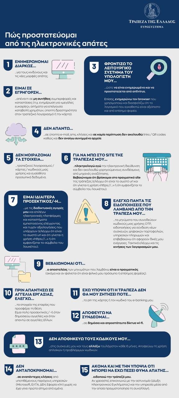 • Σε περίπτωση που πέσετε θύμα απάτης, τερματίστε άμεσα την κλήση και επικοινωνήστε με την τράπεζα.