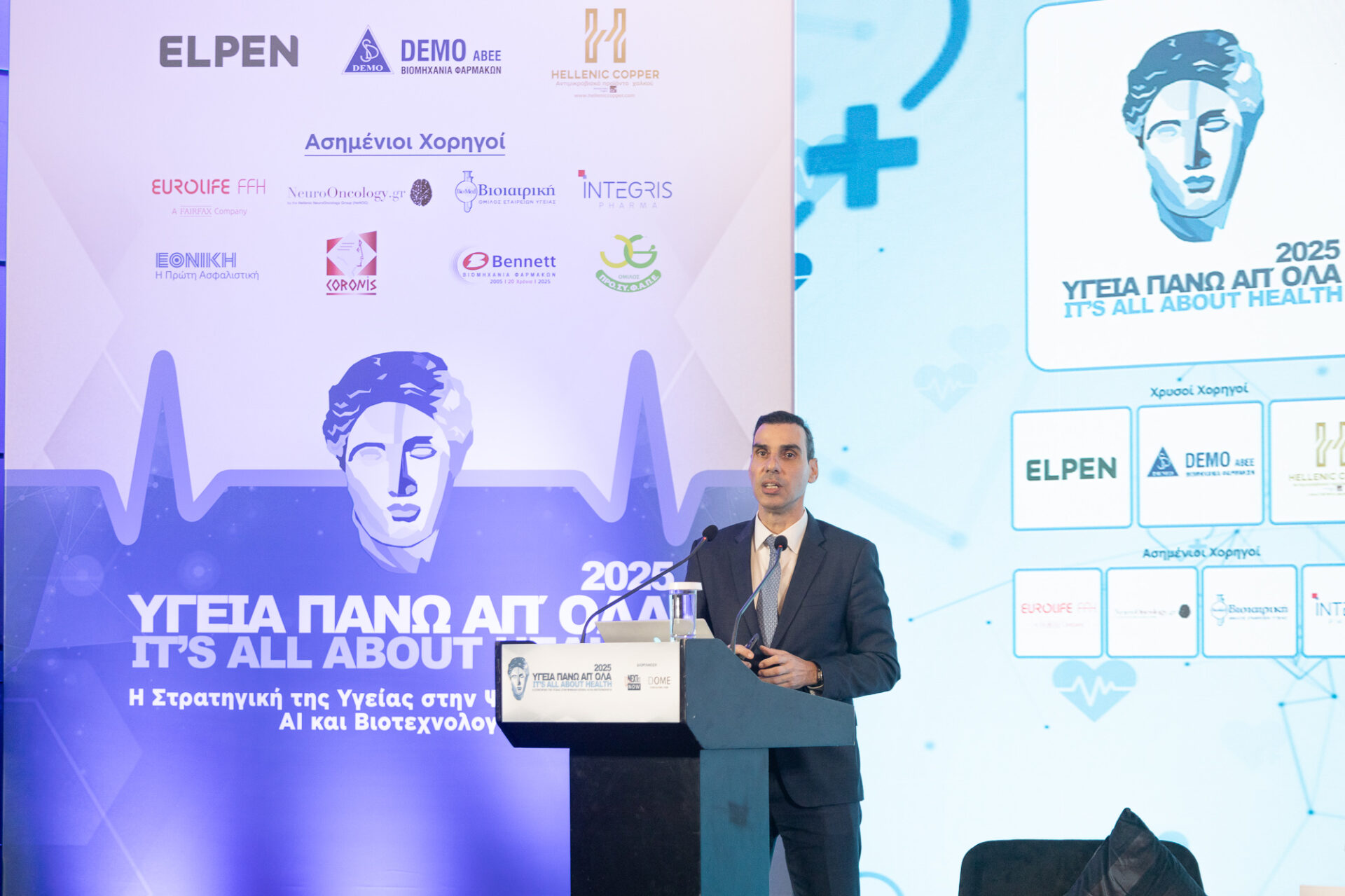 Ο υφυπουργός Υγείας, Μάριος Θεμιστοκλέους, κατά την εισήγησή του στη δεύτερη ενότητα του ετήσιου συνεδρίου «Υγεία πάνω απ’ όλα 2025», με τίτλο «Ο ρόλος της AI και της Βιοτεχνολογίας στην αντιμετώπιση των προκλήσεων» τόνισε ότι η Τεχνητή Νοημοσύνη «δεν έρχεται απροσδόκητα» στον χώρο της υγείας, αλλά αποτελεί μέρος μιας ιστορικής περιόδου όπου «τα γεγονότα εξελίσσονται με ρυθμό αναπνοής». Όπως είπε, η ΤΝ ανοίγει ένα νέο κεφάλαιο για την ιατρική, και το στοίχημα για την Ελλάδα «δεν είναι να το διαβάσει, αλλά να το γράψει η ίδια».